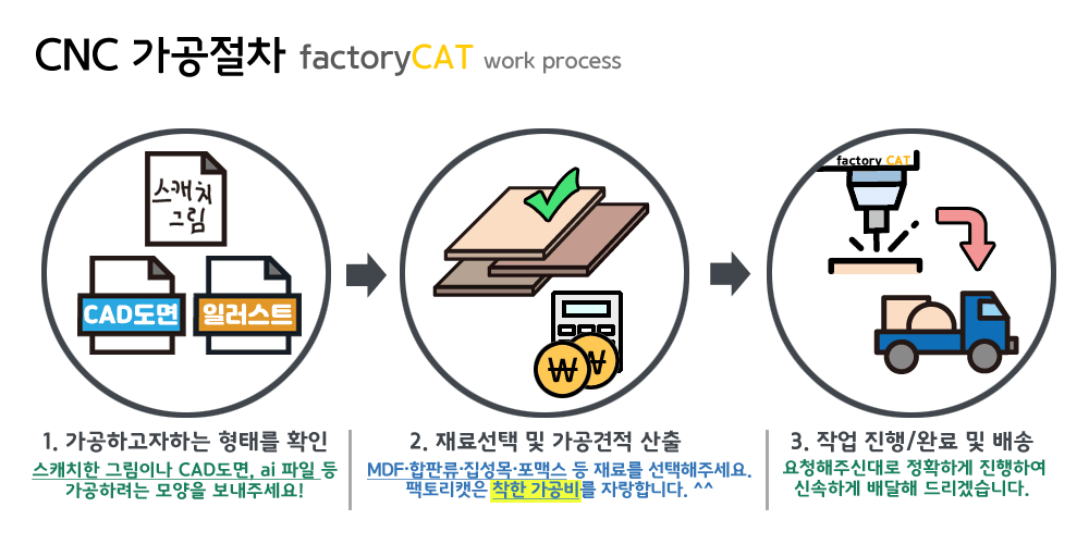 팩토리캣은 항상 여러분의 입장에서 생각하며 합리적이고 유도리 있게 작업을 진행하도록 하겠습니다.